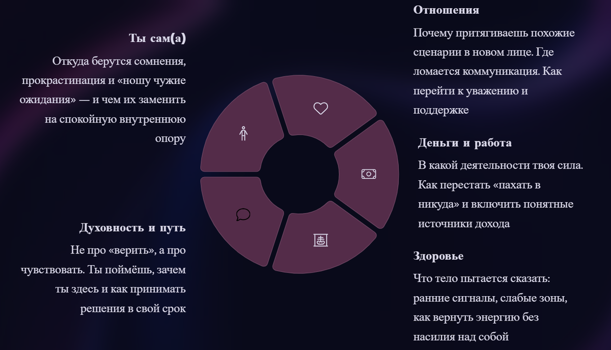 - Ясность по 5 ключевым сферам жизни